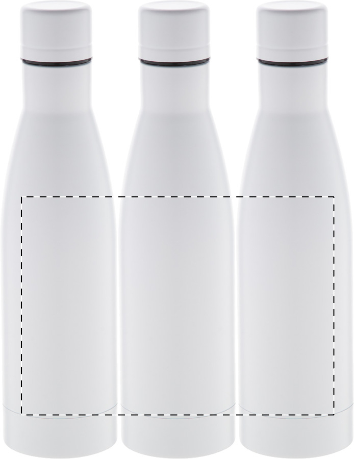 Doppelwandige, kupferisolierte Vakuumflasche aus Edelstahl. Füllmenge: 500 ml. Die Kupferisolierung hält Getränke ca. 12 Stunden lang heiß und ca. 24 Stunden lang kühl.
